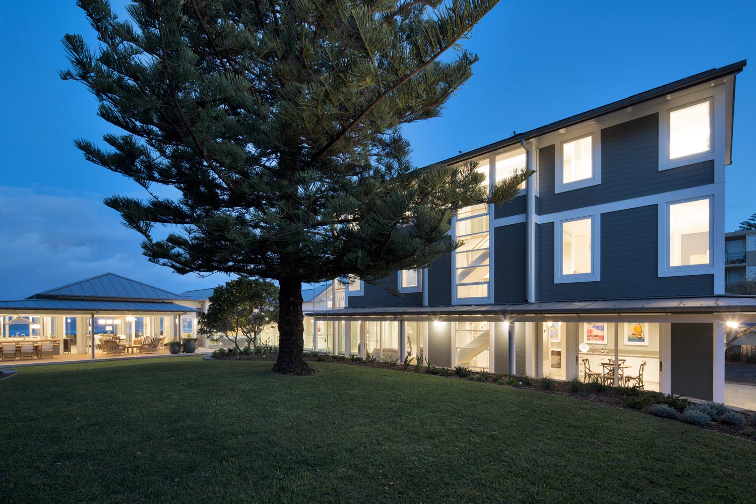 An HIA-Award winning second-generation rebuild of a beach home, featuring a post and beam pavilion.